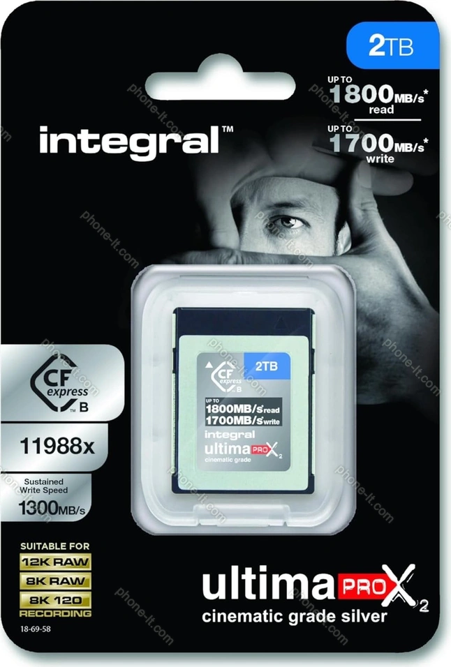 Карта памяти Integral ultima PRO X2 Cinematic Silver R1800/W1700 CFexpress 2.0 Type B 2TB, Литва |