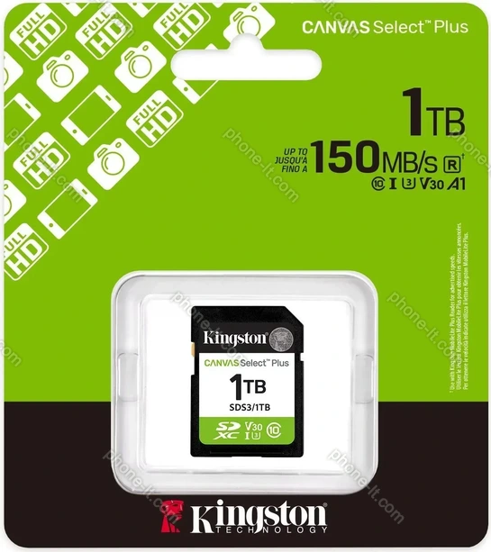 Карта памяти Kingston Canvas Select Plus Gen3 R150 SDXC 1TB, UHS-I U3, A1, Class 10 купить недорого в Литве: гарантия качества и оптовые цены